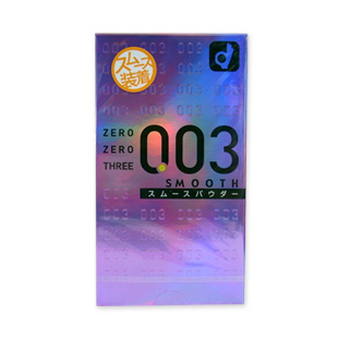 - ゼロゼロスリー スムースは、薄さわずか0.03mmのコンドームです。触って、装着してあまりのうすさにびっくり。高いフィット感はまるで素肌感覚です。潤滑剤にはパウダータイプを使用していますので装着感と機能性はそのままに、手がべたつかずサラサラ感覚が味わえます。